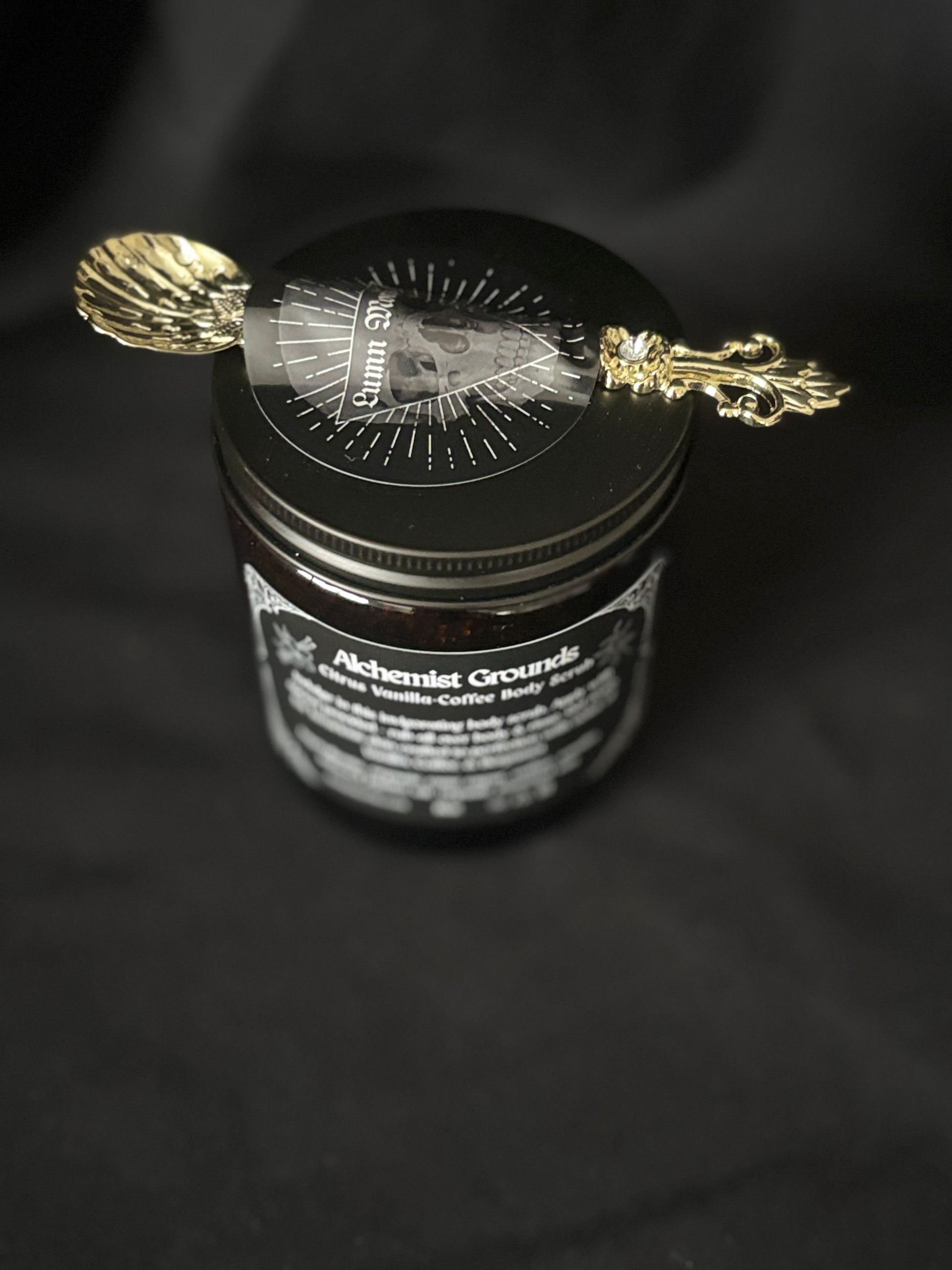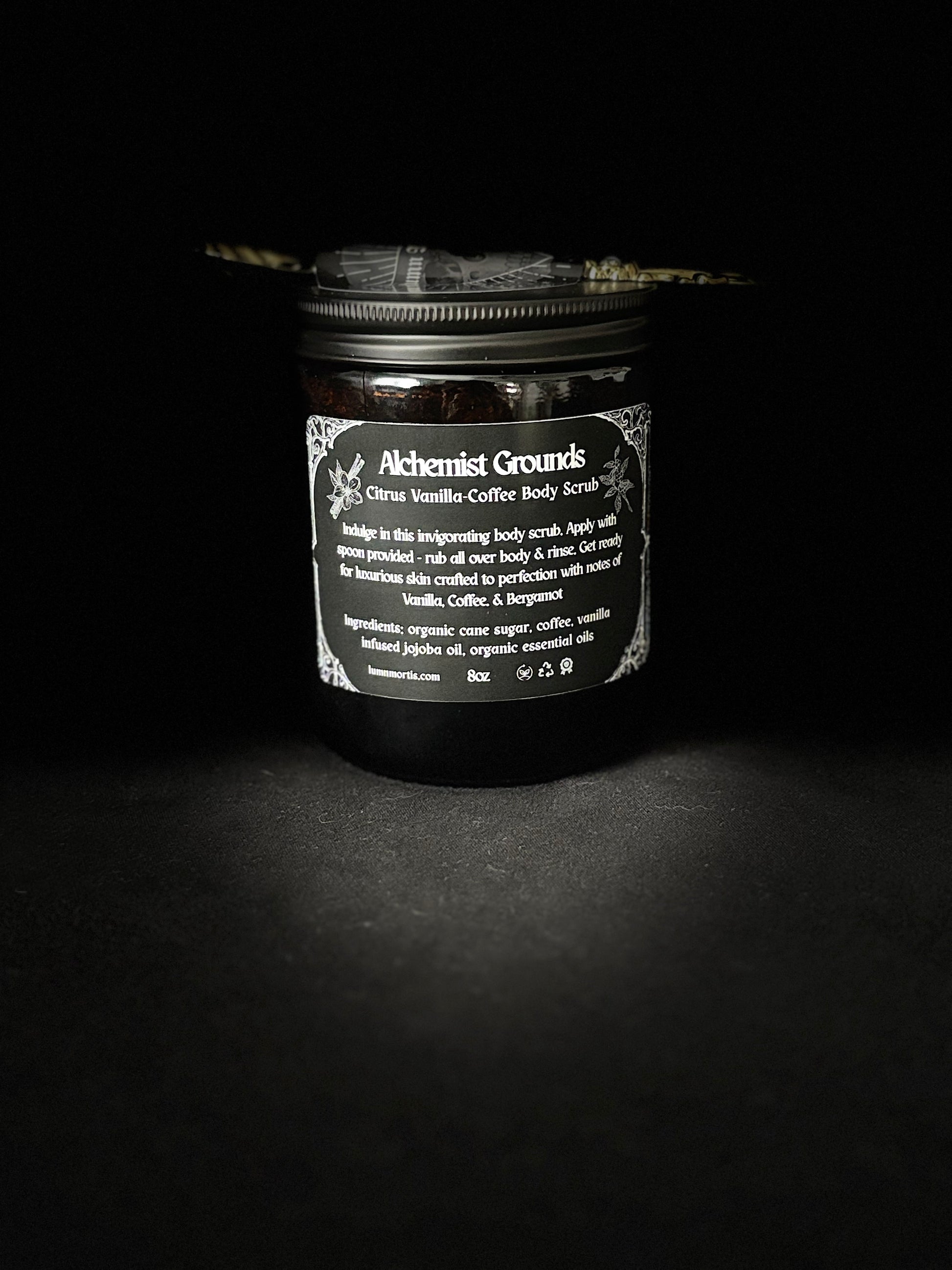 Alchemist Grounds transforms your shower into a sensory escape. This 8oz body scrub blends finely ground coffee with organic cane sugar to gently buff away dead skin, while vanilla-infused jojoba oil nourishes and softens. Bergamot notes create an uplifting aromatherapy moment that melts stress away. Completely natural and organic, it's the perfect year-round ritual to awaken your skin's luxurious glow and soothe your soul. Use provided spoon for application.