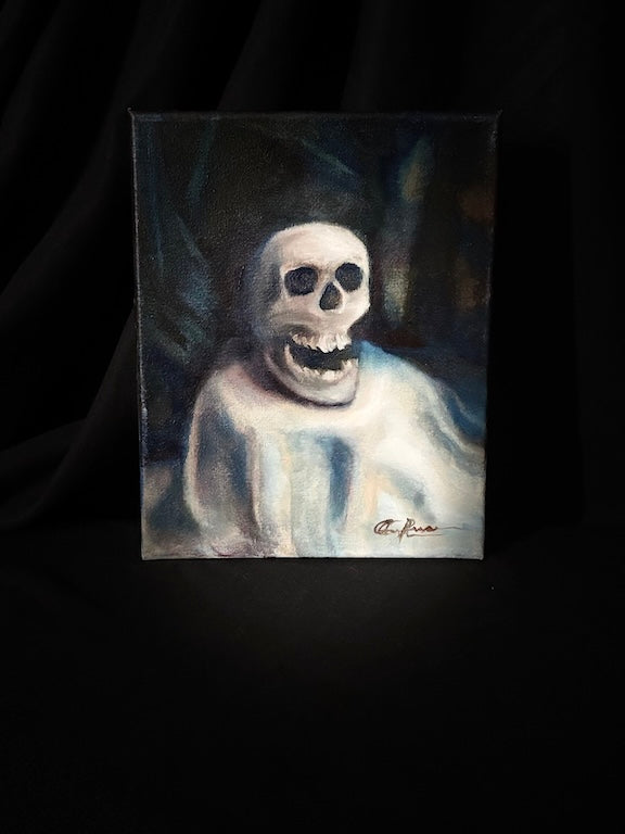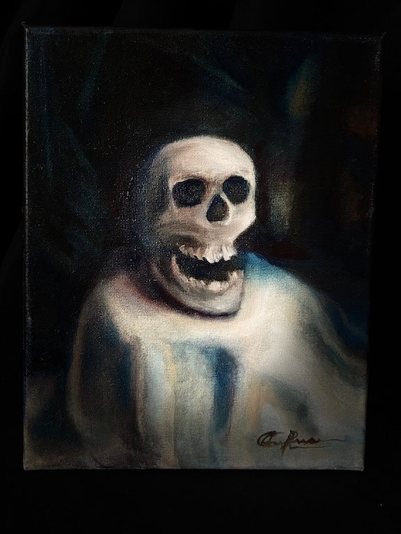 A haunting masterpiece born from Adam Romano's brush, this original oil painting captures a gothic skull rendered with raw, visceral intensity. Each brushstroke pulses with dark emotion, transforming bone into poetry. This is no mass-produced print—it's a singular creation that exists nowhere else, a genuine artifact for those who embrace the shadows. Perfect for collectors who crave authenticity and aren't afraid to let their walls whisper secrets. Own a piece of genuine macabre artistry that speaks to the beautifully dark soul within. 8" x 10"