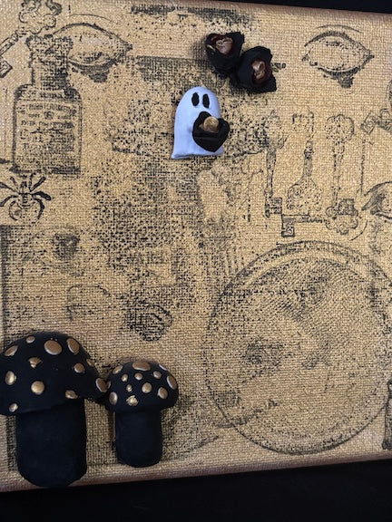 Discover the enchanting "Gold Ghost" – an original mixed media artwork by Ashleigh Romano. This captivating 6" x 6" piece features a delicate ghost cradling a rose against a shimmering golden background, enhanced by vintage stamping that adds character and depth. Each element combines to create a hauntingly beautiful composition that draws the eye and sparks conversation. Perfect for those seeking distinctive art that blends whimsy with elegance, this one-of-a-kind piece transforms any room into a gallery-worthy space. Invite mystery and charm into your home with this truly inviting original creation.