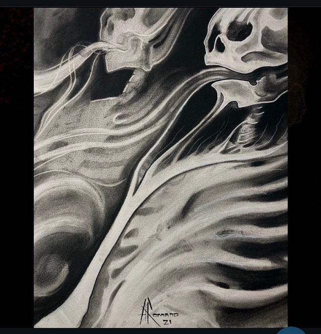 "Respice Finem" is a sophisticated, one-of-a-kind original artwork rendered in charcoal on paper. Thoughtfully framed, this piece invites quiet reflection and adds a timeless, elegant touch to any space. Its unique depth and texture make it a striking centerpiece for discerning collectors seeking meaningful artistry. Original sold in white ornate frame 19 1/2" x 24"